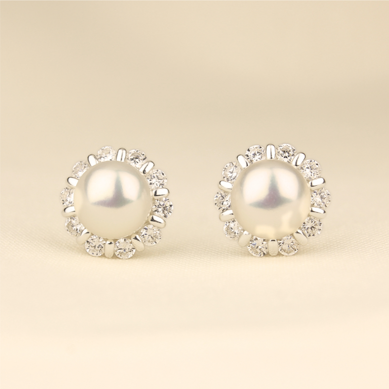 Pendiente Perla Redonda Brillante